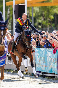 In Luhmühlen liegt die Dressur hinter den Startern der CCI4*-Prüfung. Traditionell wird in deren Rahmen auch die Deutsche Meisterschaft der Vielseitigkeitsreiter ausgetragen und kein Geringerer als der Titelgewinner des Vorjahres, Michael Jung, liegt nach seinem Auftritt im Viereck mit dem elfjährigen Iren Highlighter hier in Führung. Mit 74,40 Prozent, umgerechnet 25,6 Minuspunkten, nimmt der Reitmeister zudem in der offenen Wertung hinter William Coleman und Chin Tonic HS (24,6) aktuell Rang zwei ein. Dirk Schrade und Casino positionieren sich nach der Dressur mit 26,4 Punkten auf Platz zwei in der Meisterschaft und auf Platz drei in der offenen Wertung. Alina Dibowski und Barbados gehen knapp dahinter von Platz drei aus ins Rennen um den Titel (26,8). Im CCI5*-L konnte sich Felix Vogg im Sattel seines Colero mit einer starken Leistung und 29,0 Punkten nach der Dressur den vorläufigen vierten Platz sichern, in Führung liegt vor dem Gelände mit 24,9 Zählern die Britin Bubby Upton mit Cannavaro. (wentsch Foto (Archiv): TomsPic/Michael Jung Highlighter)