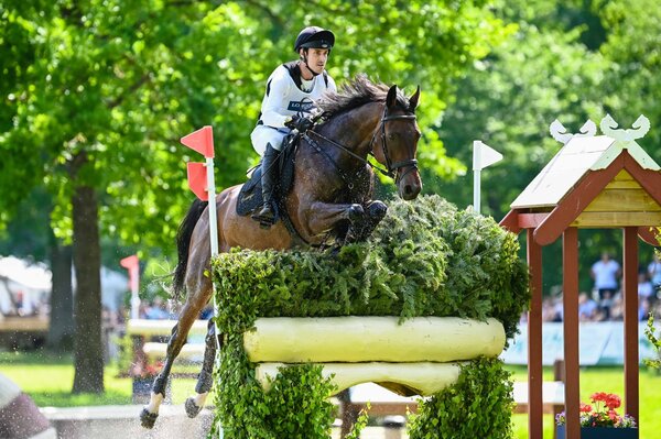 Zwei Top-Reiter aus Baden-Württemberg liefern beim Vielseitigkeits-Klassiker in Luhmühlen auch im Gelände sensationell ab. Mit einer Nullfehler-Runde im Cross setzte sich Felix Vogg im Sattel seines Olympia-Pferdes Colero an die Spitze des starken Starterfeldes der CCI5*-Prüfung - es bleibt bei einem Dressurergebnis von 29 Punkten. Vogg pilotierte seinen 14-jährigen Wallach sicher durch das von Mike Etherington-Smith anspruchsvoll gebaute Gelände, womit der in Überlingen beheimatete und für die Schweiz startetende Reiter den zweimaligen Luhmühlen-Sieger Tim Price mit Vitali auf den zweiten Rang (29,1) verwies. Mit 29,6 Punkten ebenfalls nur knapp dahinter rangiert der Brite Oliver Townend mit Dreamliner auf Platz drei. Im morgigen Springen ist also Hochspannung garantiert! Im Gelände des CCI4* ebenfalls souverän ohne Fehler blieben Michael Jung und sein Ire Highlighter, was für den Reitmeister nach 11,6 Zeitfehlern des bis dato Führenden William Coleman, neben der Führungsposition in der Deutschen Meisterschaft nun auch die Spitze in der offenen Wertung bedeutet. Einen Fehler kann sich Jung, der mit 25,6 Punkten in den Parcours geht, nach aktuellem Stand allerdings nicht leisten - schließlich folgt ihm Jérôme Robiné auf Black Ice mit 29 Punkten auf Platz zwei. Dirk Schrade der auf Casino 3,2 Zeitfehler im Gelände kassierte, liegt mit 29,6 Punkten vor dem Springen auf Platz drei im CCI4* und auf dem Bronzerang in der Meisterschaftswertung. (wentsch Foto: TomsPic Felix Vogg/Colero)