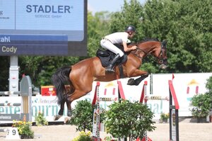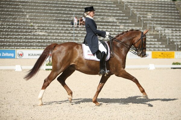In der Kür am Abend erreichte das Paar ebenfalls Platz vier. Bis zu 72 Prozent erhielten sie für den künstlerischen Eindruck, 68,33 Prozent waren es schließlich. Fünf Paare waren an den Start gegangen, zuvor mussten sie sich am Freitag in einer S*-Dressur qualifizieren. Nachdem er schon die Qualifikation für sich entschieden hatte, gewann Björn Steigauf auch die Kür mit seinem neunjährigen Zeo Zonik (75,75 Prozent). Für den künstlerischen Eindruck vergab Richterin Katharina von Stetten (bei C) sogar 80 Prozent. Myriam Anhalt war gleich mit zwei Pferden vom Dressurzentrum Grabs angereist. Im Sattel 12-jährigen Westfalen Rock Forever II ritt sie auf Platz zwei (74,95 Prozent), mit dem elfjährigen Rocco Granata wurde es Platz drei (70,41 Prozent). Miriam Alber, am vergangenen Wochenende in Ichenheim platziert, erreichte Platz fünf mit ihrem bewegungsstarken Vitalis-Nachkommen Van Damm (66,83 Prozent). (mj)
