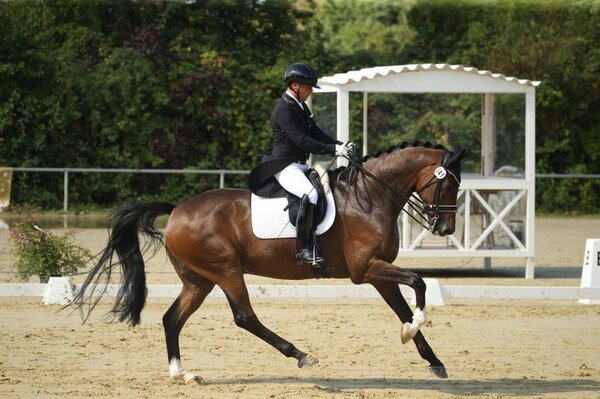 Das Viereck beim RV Dreiländereck liegt ihm einfach: Der 15-jährige Hannoveraner Don Primo bewies dies auch an diesem Wochenende mit einem Sieg in der S*-Dressur für Amateure. Mit seiner Reiterin Julia Elsässer konnte der Dunkelfuchs vor allem in der Galopptour punkten, in der die Richter einige Male die 7 vergaben. Zweite wurde Tina von Briel mit ihrem erst achtjährigen Tallahassee. Zuletzt war das Paar am vergangenen Wochenende in Ichenheim Dritter in der S*-Dressur. In Weil am Rhein unterstreichen sie die gute Form. Der Oldenburger begeisterte mit einem raumgreifenden Schritt, für den es sogar eine 8,5 gab. In der Galopptour waren sich die Richter hingegen etwas uneinig – so erhielt das Paar für den starken Galopp sowohl eine 7 als auch eine 3. Gina Jörn-Zapf und ihre selbst ausgebildete Una Esmeralda ritten auf Rang drei. Für die ebenfalls erst achtjährige Trakehnerstute ist es nach ersten Erfolgen in Dressurpferde-S-Prüfungen die erste Platzierung in einer S*. Sie präsentierte sich als vielversprechendes Nachwuchspferd und muss nun noch mehr Kraft und Routine bekommen. Platz vier ging an Julia Schneider, Württembergische Dressurmeisterin U25 von 2020, und den neunjährigen Fürst Felipe v. Fürst Romancier. Das Paar begann mit einer guten Trab- und Schritttour, Fehler in den Galoppwechseln kosteten Punkte.