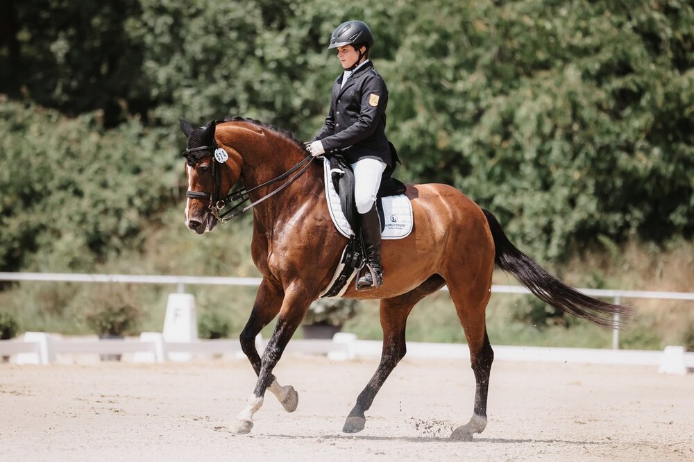 In Ladenburg setzte sich der württembergische Children-Meister Lucca Pfeil mit seiner Stute Wanonida und korrektem Reiten an die Spitze der Qualifikaktion und der Gesamtwertung. Dahinter folgten die frisch gebackene Südbaden-Juniorenmeisterin Louisa Leonhard auf dem Schimmel Looks like Riccioli und der Berufsreitertochter Joy Maier aus Münchingen auf Legamenta, sicher dem besten Pferd im Wettbewerb. Auf Rang vier platzierte sich Kaya Wehrle aus Schoren-Engen auf Fürstenprinz (rok/Foto: Yadel Möhler).