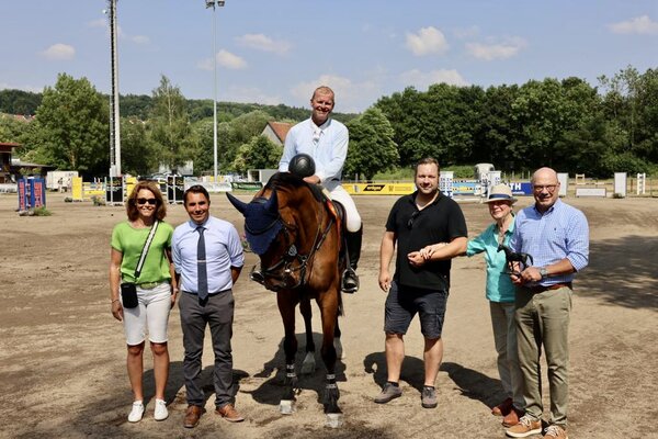 Es war kein Geringerer als Springprofi Uwe Carstensen, der am Sonntagnachmittag in gewohnter Manier den Großen Preis der Stadt Heidenheim für sich entschied. Vier Paare waren mit weißer Weste in die Siegerrunde des schweren Springens eingezogen. Im Sattel des Youngsters PBM Cesario, einem Sohn des Cesano II aus dem Besitz und der Zucht der PBM Pfefferle GmbH, beendete der Leipheimer das Stechen fehlerfrei und führte den Braunen souverän zu seinem ersten S-Sieg. Positiv stach der siebenjährige DSP-Hengst bereits im Springpferdealter ins Auge, war dort siegreich bis zur M-Klasse. Carstensen verwies somit den Aalener Marcel Baßler und seinen Holsteiner Laterne auf die Plätze. Der zwölfjährige Wallach aus der Zucht von Ditmar König-Bayer war knapp eine Sekunde langsamer als sein junger Konkurrent. Platz drei ging an Thomas Kluge, der mit seinem selbstgezogenen Württemberger Lewinson zwar mit Abstand die schnellste Runde aufs Parkett legte, jedoch einen ärgerlichen Hindernisfehler kassierte. Damit setzte sich der Amateur noch vor Simon Schlachter und Catokia.