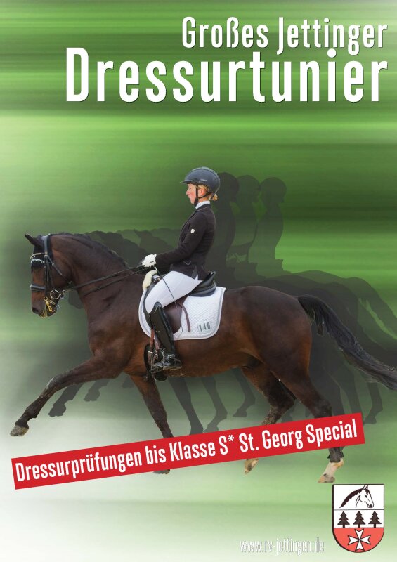 Vom 24. - 26. Juni 2022 wird großer Dressursport im Reit- und Fahrverein Jettingen gezeigt. Bereits vor einem Jahr hat der hocherfolgreiche Verein in Sachen tradionelles Springturnier an Pfingsten, den Sprung vom Springplatz, hinein ins große Dressurviereck gewagt. Das Team um die erste Vorsitzende Ann-Kathrin Nitsch hatte nur kurz Zeit um nach besagtem Pfingstturnmier durchzuatmen. 125 Dressurpferde werden über zwei Tage an den Start gehen- die “Jungen” in Dressurpferdeprüfungen bis hin zu weit ausgebildeten Pferden und ihren Reitern, die sich bis zur schweren Klasse S* messen. Der Abschluss und Höhepunkt wird am Sonntagnachmittag die schwerste Prüfung des Turniers, ein St. Georg Special sein. Für beste Bedingungen wurde gesorgt. Das Prüfungsviereck wurde mit einem neuen Boden ausgestattet. Der Abreiteplatz stellt mit einer Länge von 80 Metern genügend Platz für alle Teilnehmer. Sollte es regnen, kann in der Reithalle abgeritten werden. “Wir freuen uns auf ein spannendes Wochenende, mit hochkarätigem Sport. Ganz besonders auch für unsere Sponsoren und Zuschauer”, so Miriam Graf, Dressurausbilderin und für den heimatlichen Verein an den Start gehend.
