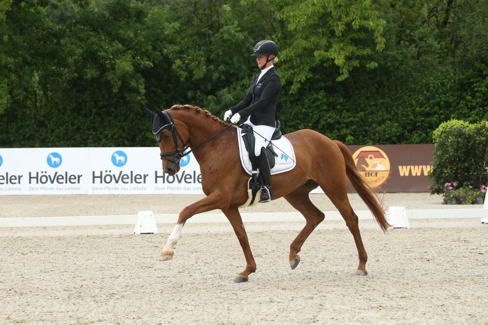 Die sechsjährigen Dressurpferde starten in einer Dressurpferdeprüfung der Klasse M. Auf Rang eins trabte die sympathische Fuchsstute Fürstin Primavera, eine in Baden-Württemberg gezogene DSP-Stute von Fürst Fohlenhof-Quando-Quando (Z.: Dr. Sabine Sickmüller) unter ihrer Besitzerin Vera Breidenbach. Für die Beiden gab es lediglich im Schritt eine 7,0, sonst gab es keine Note schlechter als 8 – führt zu einem Endergebnis von 7,9. Rang zwei teilten sich gleich zwei Pferde mit einer 7,6. Zum einen Timo Kemmerer mit Barnaby v. Barroso-Florencio I (DSP/BW, Z: ZG Kemmerer, B: Petra Wirth) und Lisa Horler mit der amtierenden österreichischen Bundeschampionesse aus dem letzten Jahr, Get you the Moon v. Goldberg-San Amour I (Z.: Lebrecht Angerer, B.: Sarah Runge).