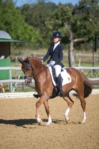 In Überlingen stand an diesem Morgen die nächste Station des Pony-Dressurmasters an. Die Siegerin der Winterlinger Etappe und aktuell Führende der laufenden Ponymaster-Wertung sollte auch heute die Nase vorne haben. Mit bärenstarken 74,146 Prozent gewann Leni Sophie Louise Wächter im Sattel ihres immer besser werdenden Ballack vM eindeutig. Fast drei Prozent trennten die junge Leonbergerin von der zahlreich erschienen Konkurrenz. Auch ihr Zweitpony, den elfjährigen Colourfull Cannonball, steuerte Wächter auf das Podium. Die Richter Deborah Bistritz, Barbara Hiller und Dr. Helmut Mett vergaben 70,691 Prozent, was den Bronzerang bedeutete. Mehr als zufrieden kann auch Bayern Export Jana Reichl mit ihrem Belagio sein. Mit 71,626 Prozent belegte die 15-jährige aktuell Führende des Landesjugendcup-Rankings heute den zweiten Platz. Erstmals die 70 Prozent knackte heute Roxy Wein im Sattel ihres Dimacci D. Mit 70,366 Prozent setzte sich Wein vor die Sieger der Ponymaster-Etappe aus Rot am See, Thyra Marie Eggers und Der kleine Prinz, die heute Fünfte wurden mit 69,106 Prozent. (akb)