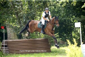 Im Feld der Sechsjährigen spielte Mareike Pape ihre ganze Routine aus - sie stellte mit der, aus der Zucht von Regina Engelberth stammenden und auch in deren Besitz stehenden FBW Cajuga (Casino Grande/St. Moritz Junior) die Championesse der Deutschen Sportpferde und der Württemberger. Für die blitzsaubere Geländerunde der beiden zogen die Richter die 8,7, was auch den Sieg in dieser Teilprüfung bedeutete. Platz zwei bei den sechsjährigen DSP-Youngstern ging mit jeweils der glatten 8,0 in Dressur und Springen, sowie einer Wertnote von 8,6 im Gelände an die, von Ronny Voigt souverän gerittene Caruu (Carleyle/Landrebell, Z.: Werner Voigt, B.: Dagmar Bierschenk). Dahinter reihte sich unter Sabine Friedrich die Landskron-Tochter Giganta (MV Lahnstein) aus der Zucht von Ludwig Ebermann ein. Besitzerin der braunen Stute ist Gertraude Trensch. Der von Simon Metz mit einer 8,5 routiniert durchs Laupheimer Gelände pilotierte Cai-Uwe (Changing Winds/Imparo) aus der Zucht von Georg Hiebsch und im Besitz von Jan Hiebsch wurde Vize-Champion der Sechsjährigen aus der Landeszucht. Auf Platz drei galoppierte der großrahmige Fuchswallach FBW Duke´s Daylight unter seiner Besitzerin Eva Terpeluk (Z.: Dr. Christiane Terpeluk).
