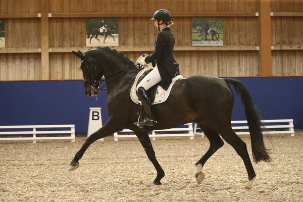Beim CDI4*-Turnier auf dem wunderschönen Schafhof in Kronberg kamen heute nicht nur die Amateure in einer S*-Dressur zum Zug, sondern die Amateure erhielten in einer S**-Dressur ebenso die Chance vor großer Kulisse zu reiten. Auch hier konnte wiederum ein baden-württembergischer Sieg gefeiert werden und Anna-Louisa Fuchs siegte erstmals mit dem elfjährigen Rizzoli in einer S***-Dressur. Nachdem sich der Wallach in den letzten Wochen schon in aufsteigender und gefestigter Form präsentierte und sich die Beiden zuletzt in Heiligenwald und Ladenburg in Dreisterneprüfungen platzierten, durften sie sich heute mit 68,7 Prozent über den Sieg freuen. Sie überzeugten besonders mit ausdrucksstarken Trabtraversalen und Passagen. Die Passagen kann der Wallach immer besser halten. Die Piaffen waren heute noch im erlaubten Vorwärts angelegt und diagonal abfußend. Die Galopptour begann mit einem teuren Fehler, als Rizzoli in der Galoppverstärkung mehrere Einerwechsel sprang. Die erste Galopppirouette gelang gut zentriert. Die zweite Galopppirouette legte Anna Fuchs etwas groß an. Ein weiteres Highlight der Prüfung waren die fehlerfreien und schnurgeraden Zweier- und Einerwechsel. Auf dem zweiten Platz folgte Maximilane Domeyer mit dem elfjährigen Elfenkönig und 67,5 Prozent. Sie überzeugten mit einer sicheren Galopptour. Auf dem dritten Platz rangierte Dorte Pack mit 66,2 Prozent. Sie musste in der Galopptour teure Fehler in Kauf nehmen, wie z.B. versprungene Einerwechsel. (mb)