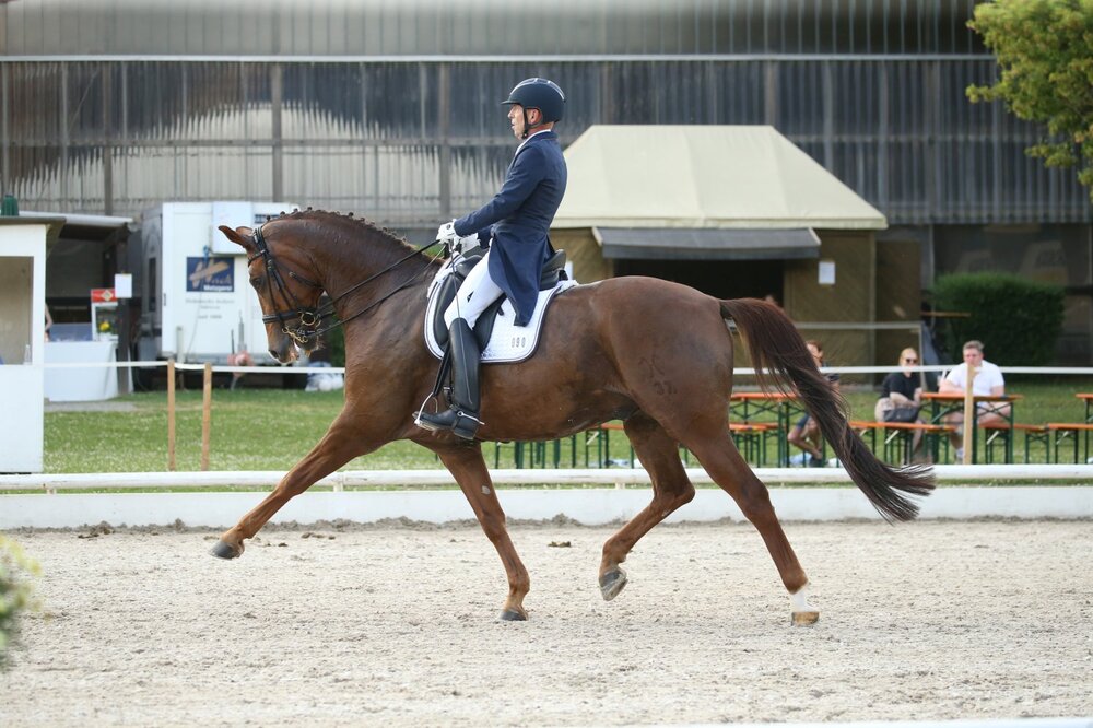 Das Goldene Reitabzeichen zu verdienen, ist für jeden Reiter ein besonderes Ereignis - für einen lupenreinen Amateur kann man einen solchen Erfolg gar nicht hoch genug bewerten. Markus Schetter aus Waiblingen hat es mit seinen aktuellen Erfolgen beim Amateur-Turnier in Kronberg geschafft! Die Erfolge des erfolgreichen Unternehmers und Reitsport-Förderers verteilen sich auf die vergangenen elf Jahre; seinen ersten S-Sieg schaffte Schetter schon 2011 in Jettingen, damals mit seinem ersten S-Pferd Rhodon. Der wichtige Zwei-Sterne-Sieg gelang dann 2017 in Aulendorf, ebenso schon mit seinem immer noch aktuellen Erfolgspferd Dont stop moving, den Yvonne Bernhard in Heuchlingen ausgebildet hat.