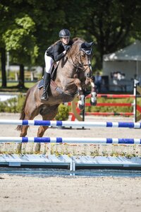 Beim Reiterverein Waiblingen ging es heute mit einem interessanten Programm weiter, so wurden eine Springpferde L sowie zwei M-Springen angeboten. Während im Zwei-Phasen-M**-Springen der Sieg noch an Kerstin Annika Walker mit ihrer elfjährigen Stute HB Dalida ging, überzeugte die Familie Kölz beim Tageshöhepunkt, einem S*-Springen, in voller Breite. Verena Kölz siegte mit einer tollen Runde in einer starken Zeit von 62,27 Sekunden. Dabei pilotierte sie ihren verlässlichen Fuchs Landor routiniert mit ganzen sieben Sekunden Abstand zum restlichen Feld durch den Parcours. Schon im Mai siegte die zweifache Mutter mit Landor im S-Springen von Leingarten. Markus Kölz musste heute seiner Schwägerin den Vorrang lassen und setzte sich im Sattel des elfjährigen Holsteiner Lagano mit einer Nullrunde und einer Zeit von 69,93 Sekunden auf den zweiten Platz. Verena und Markus Kölz zeigten heute die einzigen beiden Nullrunden. Die restlichen acht Starter mussten Abwürfe in Kauf nehmen. So auch Christian Pfeifer, der mit seiner 13-jährigen Lollita einen Abwurf kassierte. Für den Amateur reichte es in einer Zeit von 63,38 Sekunden als schnellster Vierfehlerritt für den dritten Platz. Auf Rang vier platzierte sich der Bereiter im Stall von Markus Kölz, Marvin Frey (65,59 Sekunden). Der 22-Jungprofi kassierte im Sattel von Con Argentus ebenso einen Abwurf. Zum Tagesabschluss messen sich nun noch die Junioren des Landes in einer weiteren Qualifikation zum Nürnberger Burgpokal. (msb)