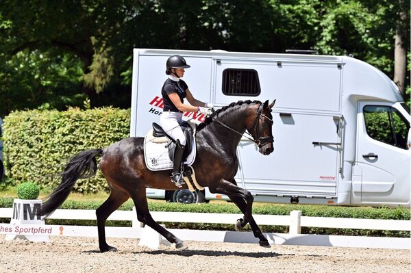 Und auch im Reitpferdeviereck ging der erste Titel des Tages nach Baden-Württemberg! Der amtierende Landeschampion Fürst Fabuloso v. Fürstenball-Alassio's Boy aus der Zucht von Anton Herre und in Besitz von Sophia Deinböck) setzte sich unter Christina Winkler mit 8,7 an die Spitze des Feldes. Der Wallach zeigte sich äußerst rittig und ausbalanciert. Besodners in der Trabtour wusste er zu überzeugen: Locker, stets im Takt mit einem fleißig abfußenden Hinterbein, 9,0. Der Vizetitel ging nach Brandeburg-Anhalt. Mareike Mimberg setzt den Don Royal-Quatergold-Sohn Del Ray gekonnt in Szene. Der Wallach stammt aus der Zucht von Dr. Frank Klakow, in dessen Besitz er auch steht. Das Paar trabte zu einer Endnote von 8,6.
