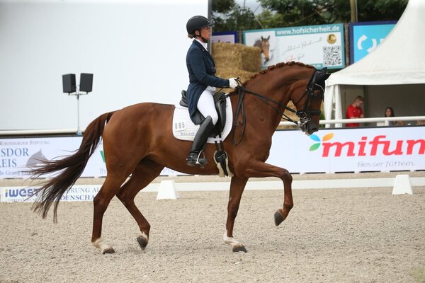 Überraschung Nummer zwei: Im Grand Prix verwies Hausherrin Nicole Casper mit der Don Diamond-Tochter Don Röschen die amtierende Landesmeisterin Jasmin Schaudt und ihren Fano auf den zweiten Platz; fünf Punkte trennten die beiden. Franziska Stieglmaier auf DSP Dauphin und U25-Landesmeisterin Anna Casper mit Holger Schulzes Donna Clara folgten auf den Plätzen in einem überschaubaren aber erlesenen Feld.