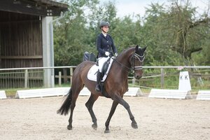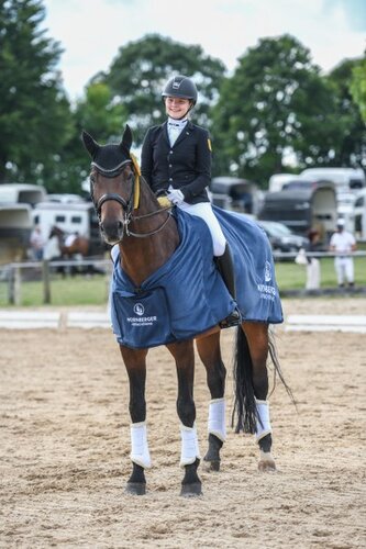Antonia Kronmüller hat in Biberach die dritte Qualifikation des Nürnberger Burgpokals der Junioren gewonnen. Mit 69,06 Prozent sicherte sie sich den Sieg im Sattel ihres Rocking Royal, 14-jähriger Westfale v. Rock Forever. Es läuft gerade richtig gut für das Paar, konnten sie erst kürzlich in Meißenheim die Silbermedaille bei den Championats Junioren auf den Landesmeisterschaften gewinnen. Für Antonia Kronmüller war es die erste Teilnahme an einer Qualifikation für das Finale des Nürnberger Burgpokals, das Ende September in Ludwigsburg ausgetragen wird. Neben ihr waren auch einige andere, „neue Gesichter“ in der Qualifikation am Start. So auch Mila Seiderer mit ihrer siebenjährigen Hannoveraner-Stute Liljana, die auf Platz zwei ritt (67,55 Prozent). Es war mit der Stute die zweite Platzierung auf L**-Niveau für die Schülerin von Stefanie Lempart. Sie ist bereits im Ponysattel mit ihrem Cosimo hoch erfolgreich, wurde nach einer souveränen Leistung bei den Landesmeisterschaften der Ponyreiter gerade als Reservistin für die Deutschen Jugendmeisterschaften nominiert. Der dritte Start in einer Qualifikation war es für Kaya Wehrle, die derzeit die Wertung anführt. Im Sattel ihres sechsjährigen, vielversprechenden Youngsters Fürstenprinz ritt sie mit der exakt gleichen Wertung ebenfalls auf Platz zwei. Damit baut sie ihren Vorsprung weiter aus und hat die Teilnahme am Finale sicher in der Tasche. Hier dürfen die zehn punktbesten Reiter starten. Vierte wurde Joy-Stephanie Maier mit der 15-jährigen Oldenburger-Stute Legamenta (67,13 Prozent), die bereits mit einem dritten Platz in Ladenburg Punkte sammeln konnte. Platz fünf ging an Ciara Buck mit der zehnjährigen Honey (66,61 Prozent). Sie konnte sich damit in der Zwischenwertung nochmal deutlich nach vorne arbeiten. (mj)