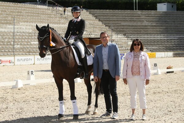 Gabi Matthes mit Escostar (mit acht Jahren das jüngste Pferd im Feld) und der sauber reitende Joachim Giersch auf der Württemberger Stute FBW Lady Darcy (von Lord Leopold) aus der Zucht von Franz Stöferle belegten die weiteren Plätze. In dieser Prüfung gab es einen Sonderehrenpreis für schönes und pferdegerechtes Reiten, gegeben von Sophie Loch (Turnierleitung), ausgesucht von der Richterin am Abreiteplatz Michaela Grupen und Sophie Loch. Der Preis ging an Joachim Giersch der den beiden besonders durch schönes, lockeres und vorallem pferdegerechtes Reiten mit viel Einfühlungsvermögen für sein Pferd aufgefallen ist!