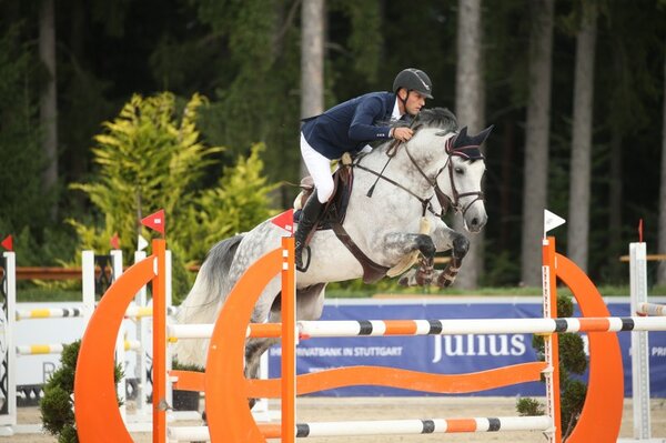 Mit seinem schnellen Schimmel Chepetto war Michael Herhalt beim S-Springen am Samstag in Gundelfingen nicht einzuholen. Erst achtjährig ist der DSP-Wallach von Christdorn, begeistert schon jetzt durch eine gute Übersicht und tolle Einstellung. Es ist sein erster Sieg auf dem Niveau der Klasse S. Zweitplatzierter Daniel Güss war mit seinem 12-jährigen Cookie Dough nah dran an dem Siegerpaar, doch letztlich fehlte ein gutes Zehntel. Damit holten sie sich ihre erste gemeinsame S-Platzierung. Platz drei und vier ging an die Frau des Siegers: Stefanie Herhalt. Mit ihren Pferden, dem 12-jährigen KWPN-Wallach Peaks Mill und der neunjährigen Hannoveraner-Stute Pep for Air, zeigte sie tolle Runden. Nicole Hirzler und die 17-jährige Holsteinerin La Belle, deren Halbbruder Limbridge gerade in Herning bei der WM für das deutsche Team am Start ist, war ebenfalls fehlerfrei: Rang fünf. Felicitas Funk und ihre Württemberger-Stute My little Sunshine sprangen auf Platz sechs. Im Sattel des neunjährigen Hengstes Cabalot ritt sie auf Platz sieben vor Marcel Friederichs und Jennifer-Sandra Dreher, die sich ebenso über eine Platzierung freuten. (mj)