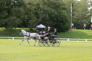 Die zweite baden-württembergische Medaille geht an Max Andrew aus Schriesheim. Er fährt mit seinem Welsh-A-Gespann bei den Pony-Zweispännern Junioren zu Silber. Sowohl in der Dressur als auch im Kegelfahren belegte Andrew Rang zwei. Lediglich im Gelände griffen seine Ponys zunächst nicht so an, wie der junge Fahrer sich das gewünscht hätte. Letztendlich hieß es Platz drei.