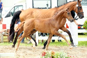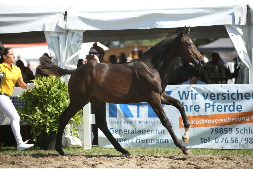 Auf die Preisspitze musste man ziemlich lang warten. Mit der Kopfnummer 42 trabte der auf den passenden Namen getaufte "The Winner" ins Auktionsrondell. Der Sohn des Tobago Z aus der Quirevella v. Quidam de Revel (Z.+B.: ZG Annette Hynek und Michael Hynek) vereint feinste Spitzenspringgenetik in seinem Pedrigree und zog sofort die Bietergunst auf sich. Bei 17.500 Euro fiel schließlich der Hammer - das Hengstfohlen ist künftig in einem renomierten Springstall in Balingen daheim. Zum teuersten Dressurfohlen avancierte ein lackschwarzer Sohn des Iowa Gold-San Amour I. "Indiana Jones" stammt aus der erfolgsverwöhnten Stamm der Candlelight S v. Cabaret, den Züchter Georg Johannes Ederle pflegt. Der Hengstanwärter wurde für 14.000 Euro zugeschlagen.