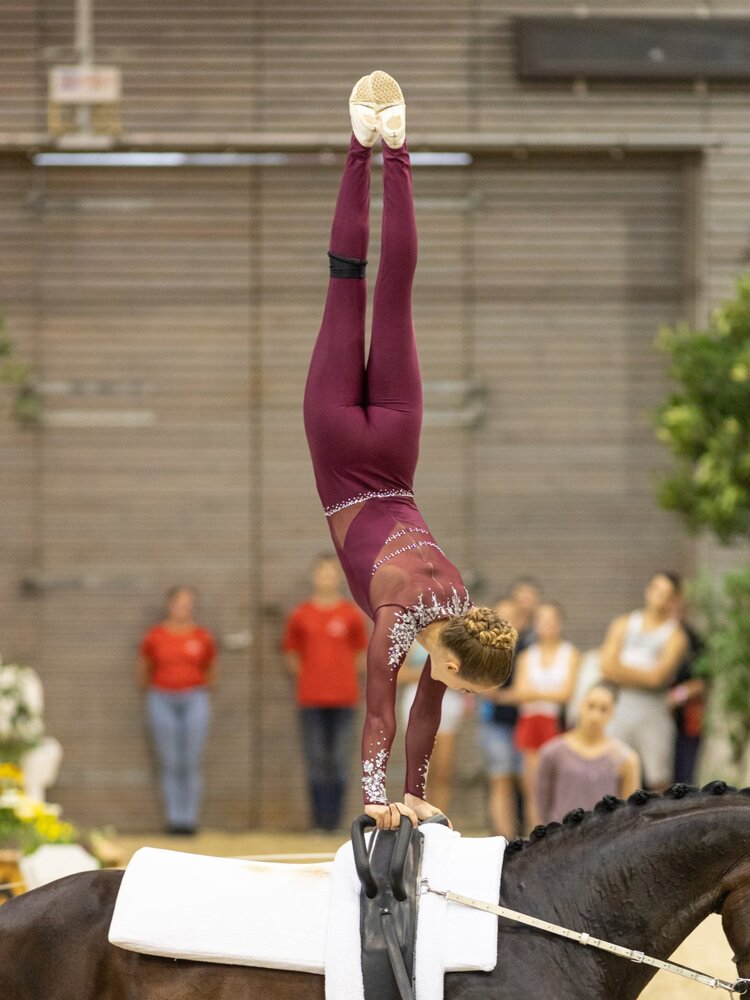 Alice Layher, amtierende U21-Europameisterin, zeigte sich auch heute in einer starken Form. Trotz kurzfristigem Pferdewechsel turnte das Nachwuchstalent auch in der Technik bei den besten Damen Deutschlands vorne mit und sicherte sich mit 7,254 Zählern einen tollen fünften Platz. Dabei überzeugte sie bei den Richtern besonders in der Note der Technik. In der Zwischenwertung liegt sie nun nach zwei Durchgängen auf einem aussichtsreichen vierten Platz. Auch Sophia Hamburger schlägt sich bei den Damen weiterhin tapfer und turnte sich heute zu 6,425 Zählern, was den 15. Platz bedeutete. In der Zwischenwertung nimmt sie im Moment Rang 14 ein.