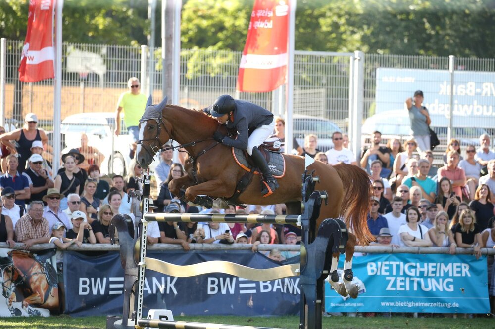 Auf den Plätzen folgten Günter Treiber mit Curtis, Markus Kölz mit Dornadello und wieder einmal als bester Amateur Jan Müller mit Ciricu. Der Ilsfelder hatte am Morgen mit Stephi Reiners Charly Champion bereits ein S-Springen gewonnen. Günter Treiber hatte sich am Vorabend mit Curtis am Vortag ein Zwei-Sterne-Springen gesichert. Nikolaus Leckebusch gewann im Sattel der siebenjährigen Zangersheide-Stute Excentique der Sieg im Finale der Youngster-Tour.