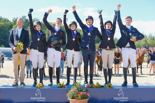 Auch wenn sich das Springen als anspruchsvoll erwies und bei nur wenigen Startern alle Stangen in ihrem Auflagen blieben, konnte das deutsche Team bei der Europameisterschaft der ländlichen Vielseitigkeitsreiter, dem Europacup, triumphieren und die Spitzenposition halten. Mit der hoch verdienten Goldmedaille im Gepäck traten Brandon Schäfer-Gehrau, Anna Haag, Carla Hanser, Konstantin Harting, Elisa Abeck und Linus Weiss die Heimreise an. Ganze 33,6 Minuspunkte Vorsprung waren es am Ende auf Belgien und Österreich mit denen das deutsche Team den Titel souverän verteidigte. Trotz der widrigen Wetterbedingungen und der Tatsache, dass heftiger Regen immer wieder für Verzögerungen im Ablauf sorgte, behielt die baden-württembergische Teamreiterin Carla Hanser im Sattel ihrer Castagnola die Nerven und blieb im Gelände fehlerfrei - im schweren Springen fiel eine Stange was am Ende mit 36,5 Punkten den starken sechsten Platz in der Einzelwertung für das Paar aus Wasserburg am Bodensee bedeutete. Etwas Pech hatte der zweite Reiter aus dem Ländle, Linus Weiss. Er kassierte mit Astrello drei Abwürfe im Parcours, was ihm mit 43.1 Zählern Platz 18 im Gesamtklassement einbrachte. Die Goldmedaille in der Einzelwertung ging an den deutschen Einzelreiter Nicholas Goldbeck mit Chinzano, gefolgt von Brandon Schäfer-Gehrau und Fräulein Frieda auf Platz zwei. Anna Haag und Little Caterpillar wurden Vierte. Konstantin Harting beendete das Championat mit Caspara auf Platz 13 vor Elisa Abeck die sich mit Cambion auf Platz 14 positionierte. (wentsch)