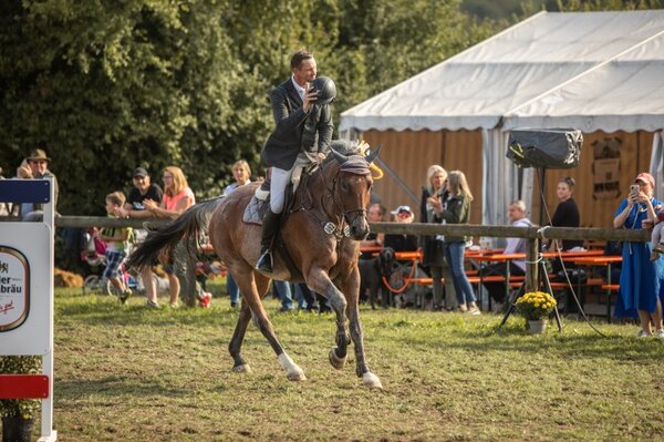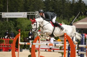 Die diesjährigen Leonberger Reiterspiele fanden heute Nachmittag mit zwei schweren Prüfungen ihren Abschluss. Im Großen Preis siegte Stefan Hirsch mit dem erst achtjährigen DSP-Wallachs Cayman S. Für den springgewaltigen Sohn des Ciacomo aus der Zucht von Ute Schmierer ist es der erste S-Sieg seiner noch jungen Laufbahn. Unter dem Sattel seines Ausbilders aus Horb am Neckar sprang Cayman S zwei fehlerfreie Runden, ein Kunststück, welches nur einem weiteren Paar in dieser Prüfung gelingen sollte. Mit 52.63 Sekunden setzten sich Stefan Hirsch und Cayman S deutlich vom Rest des Feldes ab. Stefan Hirsch wäre mit seinem Zweitpferd Evico, der bereits in Öhringen-Cappel ein S-Springen für sich entscheiden konnte, zwar schneller gewesen, allerdings blieben nicht alle Stangen lieben, was am Ende Rang drei bedeuten sollte. Dazwischen schon sich Andreas Wittlinger mit dem elfjährigen Holsteiner Carlo Magno aus der Zucht der Familie Roll, auch diese beiden behielten heute ihre weiße Weste nach Umlauf und Siegerrunde des S*-Springens an. Ihre aufstrebende Form bewies auch Katharina Schlosser erneut. Die Amazone aus Jagstzell konnte mit Quiet and surprise sowie Donna Doria Z gleich zwei Pferde in die Platzierung bringen, für Schlosser wurden es Platz vier und fünf. Die Vortagessieger, Marvin Frey und Con Argentus, wurden heute Sechste und komplettierten damit die Platzierung. Insgesamt hatten 16 Paare an dem S*-Springen mit Siegerrunde teilgenommen, elf von ihnen erreichten das Ziel.