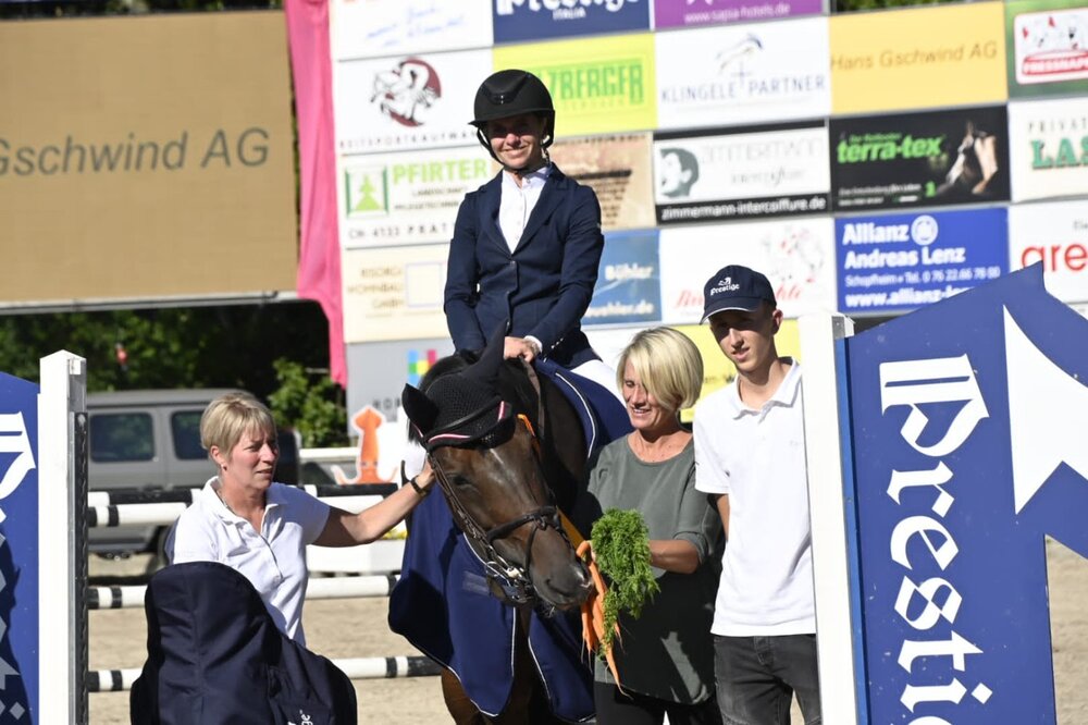 Das Schopfheim Springturnier konnte man an diesem Wochenende auch das Fest der Familie Herhalt nennen. Nachdem die Siege in den ersten beiden S-Springen an Michael Herhalt gingen, setzte sich seine Frau Stefanie Herhalt im Großen Preis an die Spitze. Mit ihrem zwölfjährigen KWPN-Wallach Peaks Mill blieb sie sowohl im Umlauf als auch in der Siegerrunde ohne Abwurf und überzeugte mit einer schnellen Zeit von 33,09 Sekunden. Auf den weiteren Rängen folgten die beiden Schweizer Laura Hunziker mit Notorius (34,32 Sekunden) und Timo Heiniger mit Conner Ege (34,70 Sekunden). Letzterer zählte zu den Erfolgsreitern des Wochenendes und sicherte sich auch im Großen Preis noch zwei weitere Platzierungen. So setzte er sich ebenso auf Rang sechs und acht. Carsten Kurz blieb mit seinem Limp Bizkit ebenso fehlerfrei und sicherte sich mit einer Zeit von 36,05 Sekunden den vierten Platz. Noelle Barry und ihr Schimmelwallach Cubit mussten in der Siegerrunde einen Abwurf in Kauf nehmen und rangierten damit auf Platz sieben. (msb)