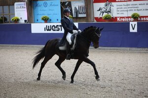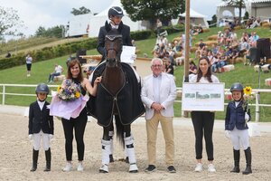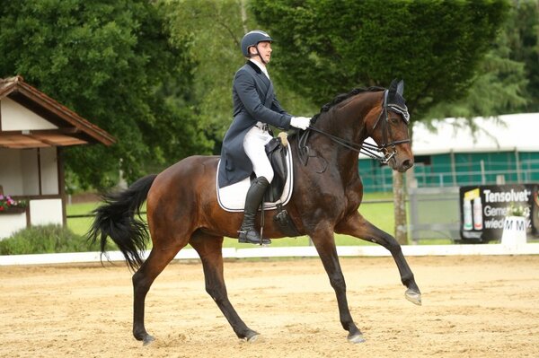 Joachim Giersch und seine Württemberger-Stute FBW Lady Darcy sind top in Form. Das bewiesen sie heute erneut beim Dressurturnier in Ehingen, wo das Paar die S-Dressur gewinnen konnte. 68,537 Prozent erhielten der Reiter vom RV Sulmingen und die Lord Leopold-Tochter. Dicht auf den Fersen waren ihnen Chiara Rüesch und der 17-jährige KWPN-Wallach Aron, der ganz offensichtlich noch nicht in den Ruhestand verabschiedet werden möchte. Sie erhielten 67,927 Prozent von der Jury. Platz drei ging an Nicole Kohler und den Oldenburger Franzel vor Marcel Wolf im Sattel des 12-jährigen Hannoveraners Fabiano. Ann-Cathrin Rieg und ihr Erfolgspony Steendiecks Derrick kamen auf Platz fünf. Deutlich uneinig waren sich die Richter bei Louisa Reisch und ihrem 14-jährigen Bayern-Wallach Diego: Während Bernd Reichle bei C sie auf Platz eins sah, wertete sie Ina-Katrin Schmid bei H auf Platz zehn. Im Mittel ergab sich aus den Bewertungen Platz sechs. (mj)