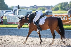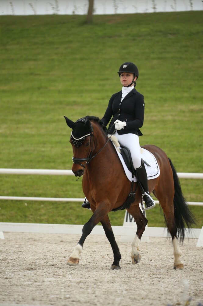 Jana Reichl wurde auch in der Einlaufprüfung zum Ponymaster-Finale in Ludwigsburg ihrer Favoritenrolle gerecht. Im Sattel ihres elfjährigen Belagio gewann die Württembergische Meisterin mit 72,236 Prozent. Damit sind die Aussichten gut für den Gesamtsieg am Sonntag. Dann werden die Teilnehmer eine Kür zeigen und wer Jana Reichl bei den Landesmeisterschaften in Meißenheim in diesem Jahr gesehen hat, weiß, dass sie und Belagio diese Herausforderung hervorragend meistern können. Zur Erinnerung: In Meißenheim konnten sie die Kür, geritten zu Klängen des Dschungelbuchs, gewinnen. Zweite wurde damals Leni Wächter, die ihren 16-jährigen Ballack mit nach Ludwigsburg gebracht hat. In der Einlaufprüfung wurde es ebenfalls Rang zwei (71,423 Prozent). Die Drittplatzierte kommt von der TSG Kaiserhof aus Legelshurst: Cecile Mutz und ihr zehnjähriger FS Champion de Luxe-Sohn Capri au Lait. Der Wallach scheint sich wohlzufühlen im Ambiente vor dem Schloss: 70,488 Prozent. Platz vier ging an Roxy Wein, Bronzemedaillen-Gewinnerin bei den Württembergischen Meisterschaften, und den neunjährigen Dimacci, die von Rang drei der Zwischenwertung in Ludwigsburg starten. Sie bekamen 68,211 Prozent. (mj)