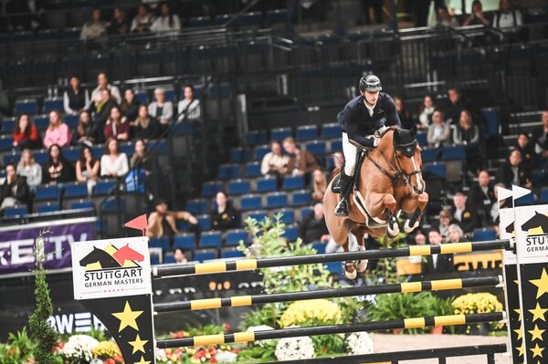 Wahnsinnsport im BW-Bank-Finale am Donnerstagabend in der Stuttgarter Schleyer-Halle: Richard Vogel, der für Mannheim startende gebürtige Oberschwabe, flog im Stechen allen davon. Im Sattel des zehnjährigen Oldenburgers Accoton PS holte der 25-jährige Seriensieger seinen ersten Hallentitel in der alten Heimat. Im Stechen hatte er vorgelegt und seine Kontrahenten regelrecht beflügelt.