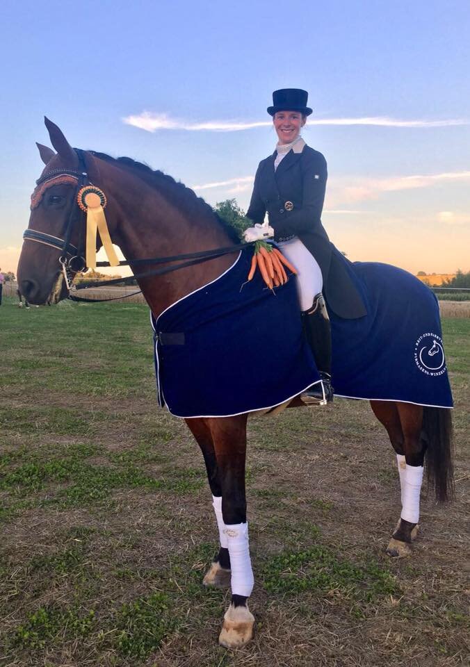 Mit ihrem Laporello hat die Dressurreiterin aus Oberschwaben beim Dressurturnier in Pirmasens (Rheinland-Pfalz) die Intermediaire II gewonnen. Im Grand Prix wurde die Schülerin von Jörg Schrödter Dritte (rok).