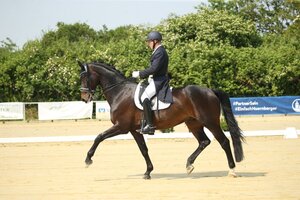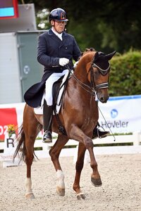 In Schorndorf führten Pieter van der Raadt und Remy Martin beide Siegerehrungen der S*-Dressuren an. Bereits in Eppelheim am Wochenende zuvor hatten der Dressurausbilder aus Zeutern und der 14-jährige Hannoveraner Nachkomme des Romancero H aus dem Besitz von Susanne Hopp beide S-Dressuren gewonnen, nun holten die beiden in Schorndorf zum nächsten Doppel-Schlag aus. Am Samstagabend setzten sich Van der Raadt und Remy Martin mit 69,722 Prozent an die Spitze, Andrea Dlugos und der Württemberger Royal Faristo (Z.: Anton Herre) rangierten auf Platz zwei mit 68,413 Prozent. Sandra Degele trabte mit ihren beiden Pferden in die Platzierung: Mit Sir Hugo wurde Degele beim Heimspiel Dritte, mit Sir Rudolpho Fünfte. Dazwischen schob sich die junge Berufsreiterin Nadine Hindermeyer aus Leonberg, die im Sattel von Dancing Wind und 67,143 Prozent Vierte wurde.