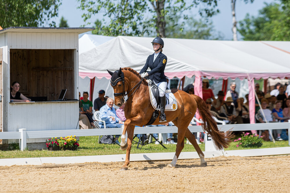 In Aulendorf finden am Pfingstwochenende bei strahlendem Sonnenschein neben Dressurprüfungen der Klasse S sowie Qualifikationsprüfungen zu den Bundeschampionaten, auch Sichtungsprüfungen der Deutschen Jugend-Meisterschaften statt. Nach den Jungen Reitern an den Vortagen, galt es heute in den Altersklassen der Junioren und Children eine erste Visitenkarte in Richtung DJM abzugeben. Mit 68,649 Prozent gewann Teresa Hoffmeister mit Don Clorentino des Paluds die M**-Dressur der Junioren. Die 17-jährige Schülerin von Carolin Völker punktete wie gewohnt mit einer dynamischen Trabtour im Sattel ihres bewegungsstarken Fuchses, der seit ziemlich genau zwei Jahren in ihrem Besitz steht, aber auch mit Highlights in Schritt und Galopp. Juliane Dörr folgte der Siegerin mit 68,514 Prozent auf Rang zwei. Die 17-jährige Stuttgarterin verstand es den Arbeitseifer ihres bildschönen Fuchshengstes Bonito in die richtigen Bahnen zu lenken. Der Sohn des Boston aus der Zucht des Haupt- und Landgestüt Schwaiganger fand vor rund zwei Jahren den Weg auf den familieneigenen Reiterhof im Feuerbacher Tal, damals über Olympionike Benjamin Werndl, zu dem Dörr auch nach wie vor regelmäßig zum Trainieren fährt. Die Drittplatzierte Malin Kampp setzt an diesem Wochenende auf ihr Nachwuchspferd Daddy’s Golden Boy – mit Erfolg! Der achtjährige Hannoveraner Fuchs ist bereits seit er dreijährig ist im Besitz der Familie und war ursprünglich als Pferd für Mutter Birthe Kampp gedacht. Mutter und Tochter haben Daddy’s Golden Boy gemeinsam ausgebildet, da es mit Malin im Sattel so gut funktioniert, fungiert der Fuchs nun als zweites Ass im Ärmel für die 18-jährige Schülerin von Ann-Kathrin Lindner. Top-Pferd Inlana V wird an diesem Wochenende geschont, schließlich war sie beim Preis der Besten am vergangenen Wochenende in Warendorf im Einsatz. Ebenfalls 67,297 Prozent vergab die Jury für Louisa Reisch aus Bad Saulgau. Ihr motivierter Diego fand im Verlauf der Prüfung immer mehr zu sich und wusste so zu gefallen.