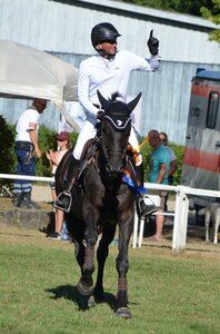 Aber dort blieb er ohne Abwurf. Mario Walter hingegen, war im Normalparcours mit seiner Fuchsstute Cora de la Rosa aus eigener Zucht mit weißer Weste – hatte den Sieg fast schon in der Tasche. Dann fiel in der Siegerrunde ausgerechnet am letzten Sprung eine Stange. Er fiel auf Rang drei zurück hinter dem immer besseren Amateur Christian Geißert mit seinem Quintop – ein Riesenerfolg für den Mann aus Graben! Mit Peter Döffinger und Shanuc schaffte es ein weiterer Amateur auf Rang vier ganz nach vorne.