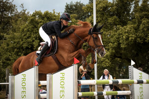 Zum 50. Mal jährte sich am Pfingstwochenende das traditionelle Turnier des Reitvereins Ötigheim. Neben zahlreichen Prüfungen für den zwei- und vierbeinigen Nachwuchs, unter anderem auch eine Gewöhnungs-Spring-LP nach Clear-Round-Richtverfahren auf E-Niveau, waren eine S-Dressur und ein S-Springen mit Stechen am Pfingstmontag ausgeschrieben. Sicher ist: Das Turnier fand einen mehr als würdigen Abschluss und war in diesem Jahr erneut ein kleines Volksfest. Am Parcours säumten sich die Zuschauer, wer zu spät kam, hatte das Nachsehen. Dicht an dicht saßen die Besucher auf dem kleinen Wall entlang des Waldes, standen dichtgedrängt am Geländer oder Schlange am Ausschank zwischen Turnier- und Abreiteplatz. Zwölf Reiter starteten im S*-Springen mit Stechen und es dauert doch etwas, bis der erste Nullfehlerritt gelang. Diesen schaffte keine geringere als Anna Burger aus Benzenbühl mit ihrem erst achtjährigen Mecklenburger Devantè. Wäre es ein Stilspringen gewesen, hätte ihr den Sieg mit Sicherheit keiner mehr nehmen können, ihre harmonische und gefühlvolle Runde war Werbung für den Sport. Mit diesem Gefühl, getragen vom Applaus der Zuschauer, wollte sie auch nach Hause fahren und verzichtete auf die Teilnahme am Stechen. Zwei weitere fehlerfreie Runden im Normalparcours gelangen Carsten Kurz mit seinem langbeinigen Limp Bizkit und Elias Hohler mit Floyo aus Viernheim. Im Stechen wäre der Sieg dann fast nach Hessen gegangen, denn Carsten Kurz und sein überragend springender Hannoveraner v. Lord Pizzaro waren mit Siebenmeilenstiefeln unterwegs und dank der riesigen Galoppade des Schimmels sehr schnell, aber hatten nach einer langen Distanz einen Fehler. Ideale Vorausssetzungen für einen Durchmarsch von Hohler, der seine Runde auf Sicherheit anlegte, sichtbar null reiten wollte und daher die großen Wege nahm. Doch dann fiel auch bei ihm eine Stange und die Zeit konnte er nicht mehr aufholen. Damit siegte Carsten Kurz. Vierte wurde Julia Beck mit ihrer kleinen, aber schnellen Stute Toulona mit einem Abwurf im Umlauf. Das Paar hat in diesem Jahr bereits neun Springen auf M*- und M**-Niveau gewonnen und einen absoluten Lauf. Auch im S-Springen zeigten sie, dass mit ihnen gerechnet werden muss. Fünfter wurde Ferdinand Hurrle mit OBC Cenwood und ebenfalls einem Fehler.