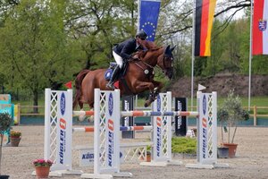 Überhaupt war Zeiskam für die Baden-Württemberger ein gutes Pflaster: Am Pfingstsonntag siegte Markus Kölz mit seinem Dornadello in einem Zwei-Sterne-Springen vor dem formstarken Ilsfelder Jan Müller mit seinem Schimmel Ciricu (rok/Foto: D. Matthaes).