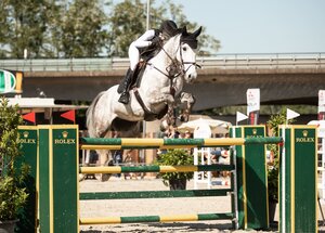 Vier Starter hatten in Ladenburg das Stechen in diesem S-Springen erreicht. Interessanterweise gab es im Stechen Zeitfehler, so dass Simone Stegmaier auf ihrem Carlotto aus eigener Zucht mit einem Zeitfehler auf Rang zwei landete vor Simona Sassi auf Mister Jones und Christian Pfeifer aus Hohenrechberg auf seiner Schimmelstute Clärchen. Mit dem schönsten Ritt des Tages landete Katharina Weißbrod vom Stall Weißbrod in Walldorf auf Rang fünf (rok/Foto: D. Matthaes)