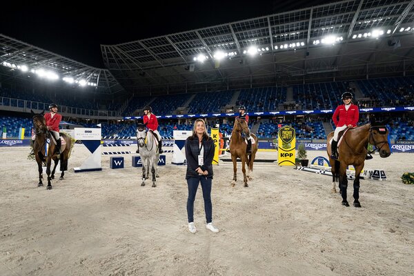 Für das deutsche Team bestehend aus Michael Jung, Pia Reich, Michael Viehweg und Marvin Jüngel lief es an diesem Abend nicht wie geplant. Michael Jung und fischerChelsea starteten zum Auftakt mit einer tollen Nullrunde, im zweiten Umlauf fiel eine Stange in den Sand. Ebenso gelang es dem Bayer Michael Viehweg mit dem Contendro-Sohn Contario. Marvin Jüngel startete mit zwölf Strafpunkten in die Prüfung, in der zweiten Runde wurden es zehn. Letztere konnten nicht als Streichergebnis gewertet werden, da Pia Reich und PB Djazz d’Arvor nach einem Fehler im ersten Umlauf, mit zwölf Fehlern aus dem zweiten Umlauf ins Ziel kamen. So standen am Ende 22 Zähler auf dem Kontostand der schwarz-rot-goldenen Truppe, was Rang sechs bedeutete.