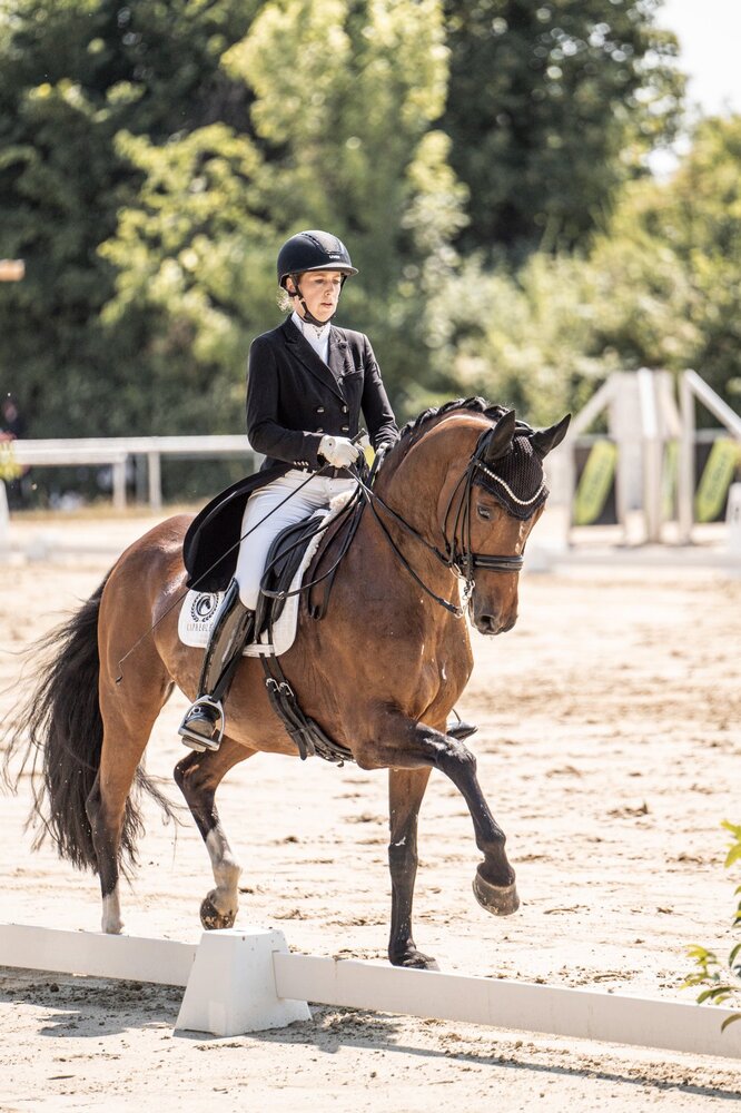 Beim Dressurturnier in Ladenburg hat Anna-Louisa Fuchs am Sonntagmittag auch den Grand Prix Special gewonnen. Zwar traten in dieser schwersten Aufgabe der Welt bei hochsommerlicher Hitze nur noch vier Paare an; dennoch war der Sieg der jungen Hirschbergerin verdient und nicht etwa einer der zweiten Klasse: Denn sie hatte ihre bayerische Stute DSP Chilli Jam nach einer ungestümen Phase auf den Punkt fit. Mit 13 Jahren und einigen verletzungsbedingten Ausfällen scheint die bayerisch gezüchtete Stute jetzt im Zenit ihrer Leistungsfähigkeit und Verlässlichkeit zu sein. Die schon als junges Pferd hochtalentierte Stute punktet vor allem in den Verstärkungen und den Traversalen. Wenn sie jetzt eine Weile konstant einsetzbar bleibt, stehen Anna Fuchs noch viele Wege offen. Sie bekam immerhin 70,5 Prozent der Punkte,