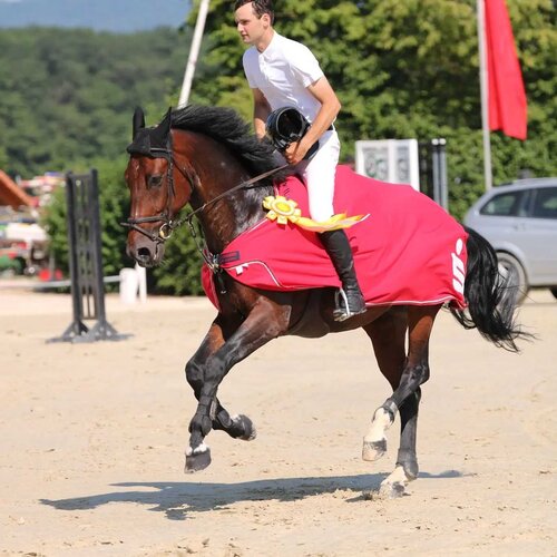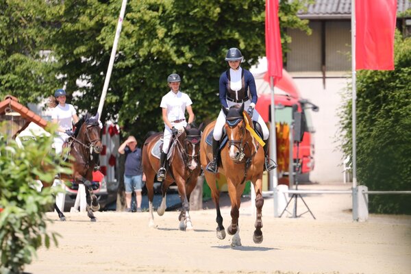 Fünf Paare hatten die Siegerrunde erreicht. Timo Beck und seine Mirabel nahmen als einzige einen Abwurf, also vier Fehler, mit ins Finale. Dort blieben sie aber ohne „Klotz“ und am schnellsten, so dass sich der starke Jockey auf Rang zwei vorkämpfte. Die Pferde-Rechtsanwältin Franziska Ritter, sehr beständig, platzierte ihre 14-jährige Stute Chilli Chianti auf dem dritten Rang als beste Amateurin, wie so oft in letzter Zeit.