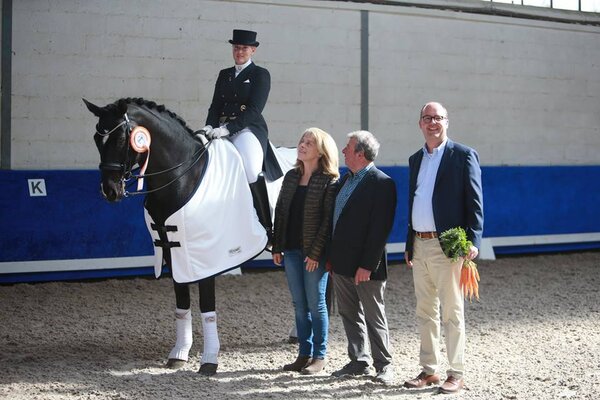 Auf den Plätzen zwei und drei folgten die Routiniers Susanne Hellmann mit Lucky Dancer sowie Linda Knoll und Disco's Dominant. Potential für mehr zeigte auch der Württemberger Don Diamond-Nachkomme Done unter Gabriele Haug. Mit viel Frische und Bewegungsstärke ausgestattet, ist bei diesem Paar noch Luft nach oben - sie wurden Vierte. (FA)