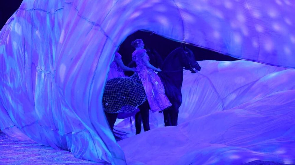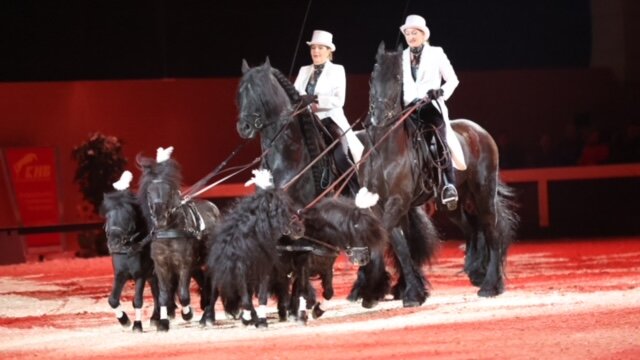 Was wäre ein Show-Abend ohne ein Ausflug in die Zirkusmanage: Das Team Sefer/Ferreira bietet atemberaubende Akrobatik und vollendete Harmonie – der coole Kaltblüter mit der zauberhaft weißen, fast bodenlangen Mähne und dem wippenden Schopf galoppiert sich in die Herzen der Besucher. Französische Pferde-Artisten, in ihrem Heimatland mehrfach preisgekrönt. Da sind Menschen ziemlich beste Freunde der Pferde – und umgekehrt!