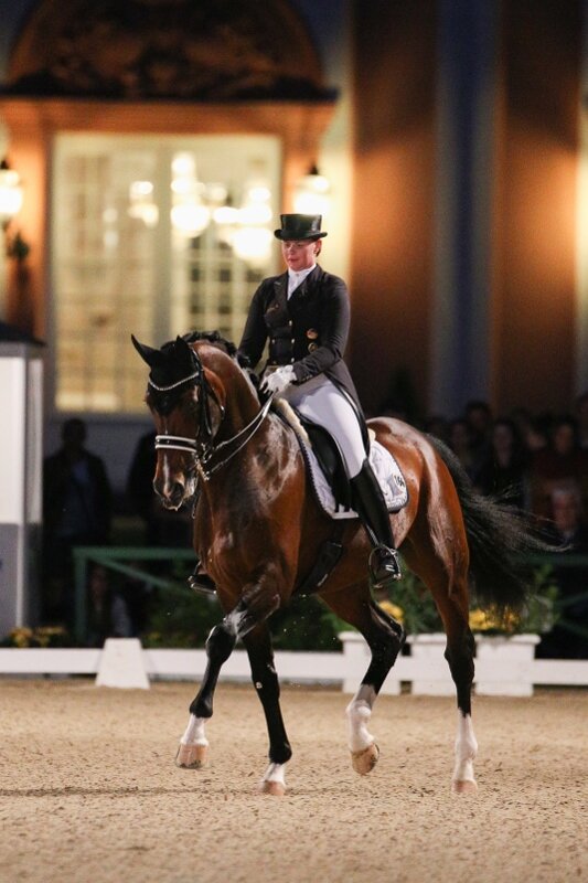 Anna Fuchs, Drei-Sterne-Siegerin und Piaff-Finalistin des vergangenen Jahres, hat ein neues Grand Prix-Pferd im Stall: Den zwölfjährigen Wallach Fürstenglanz. Die Familie Fuchs hat den Dunkelbraunen am Wochenende auf der Kathmann-„Final-Sales“-Auktion in Vechta ersteigert. Der frühere gekörte Deckhengst war unter Andrea Timpe unter anderem in der Saison 2017 international beim CDI in Wiesbaden erfolgreich. Fürstenglanz wird noch im Laufe des Montags im Stall Fuchs in Hirschberg an der Bergstraße einziehen. Da er sich im Training befindet, dürfte es mit dem ersten gemeinsamen Start nicht allzu lange dauern. Den ersten Einsatz will Anna Fuchs nun mit ihrer Trainerin Dorothee Schneider besprechen. (rok/LL-Foto/Kathmann).