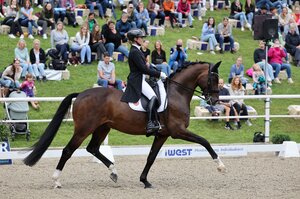 Die goldene Schleife in der Dressurwertung konnte sich Johanna Bötzel vom Akademischen Reitclub München e.V. durch eine gefühlvolle Darbietung im Dressurfinale, einer M*-Dressur, vor Lara Bühler aus Konstanz und Nadja Hemmler, die für die Reitgruppe Offenburg im Sattel saß, sichern.