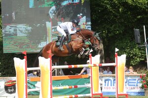 Erst gestern Abend siegte Mario Walter in Isnys Abendsonne, nun gelang dem Ostälbler im Zwei-Sterne-Springen der nächste Streich! Zuerst schien es, als würde Sven Sieger seinem Namen wieder einmal alle Ehre machen. Als zweiter von insgesamt 29 Startern blieb der Profi aus Ebenweiler im Sattel der acht Jahre jungen Holsteiner-Stute Iva de la Cor ohne Fehler in einer Zeit von 71,18 Sekunden. Benjamin Kuhn setzte mit Priscilla van de Herkkant auf eine sichere Nullrunde und war daher um einiges langsamer. Auch Gesa Gleinser, die ihre zehnjährige Coralie gesattelt hatte, knackte die Bestzeit nicht. Ein ärgerlicher Flüchtigkeitsfehler an Sprung eins musste auf das Konto von Conny Pape verbucht werden, ansonsten hätte es der Stilistin mit ihrer flinken Schimmel-Stute Wundella zur neuen Führung gereicht. Zum Schluss wendete sich dann allerdings das Blatt! Sven Sieger, der mit Like Arpeggio ein weiteres heißes Eisen im Feuer hatte, blieb abermals null in einer ähnlich schnellen Zeit als mit seinem ersten Pferd. Doch Sieger hatte die Rechnung ohne Mario Walter gemacht. Dieser nutzte die Grundschnelligkeit seiner Fuchsstute Cora de la Rosa und beendete den Parcours in 67,57 Sekunden. Damit nahm der Ellwangener dem bis dato Führenden knapp vier Sekunden ab und verwies Sven Sieger auf die Ränge zwei und drei. Auf Platz vier triumphierte Rossen Raytchev mit Verdi, die die Prüfung mit einer souveränen Nullrunde beendet hatten. Auf Rang fünf galoppierte Gesa Gleiner mit Coralie, gefolgt von Benjamin Kuhn und Priscilla van de Herkkant. Zu den weiteren Platzierten gehörtern mit jeweils vier Strafpunkten Conny Pape, Rossen Raytchev, Arwen-Charlotte Thaler und India Letizia Fux.