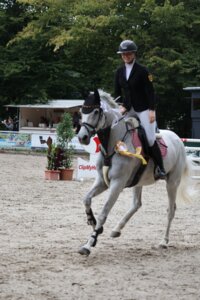 Bei den Junioren hat unterdessen Nick Armbruster die Nase vorne. Der junge Mann aus Schutterwald war auch heute fehlerfrei unterwegs mit seinem Cincinnati – Rang fünf. Gestern konnte er die Wertung, ein L-Springen über 1,15 Meter, gewinnen. Lena-Sophie Dreher ist ihm gleich mit zwei Pferden dicht auf den Fersen, Rang vier nimmt derzeit Mia Sophie Hauß mit ihrer Epona ein. Sie konnte gerade erst eine Etappe des Nürnberger Burg-Pokals gewinnen. Ihre Schwester Kim Marie war unterdessen am vergangenen Wochenende in Ichenheim im Dressursattel erfolgreich. Eine pferdeverrückte und überaus erfolgreiche Familie.