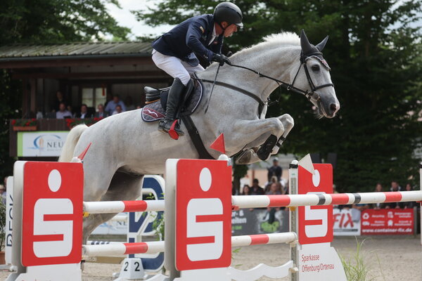 Ben Dreher konnte sich mit einer fehlerfreien Runde im Sattel seines großrahmigen Schimmels Captain Jack Rang den Einzug ins Stechen sichern, dort fiel eine Stange, Rang acht. Erst seit Februar hat er den Wallach unterm Sattel, hier hat sich auf jeden Fall ein Paar für die Zukunft gefunden.