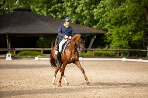 Im Sattel von Flair und Fidenzia ist Andrea Dlugos seit Jahren Seriensiegerin in Dressurprüfungen der schweren Klasse. Mit dem neunjährigen Westfalen Fuchs Peter (For Compliment/Rubinstein I) gingen bereits zahlreiche S-Platzierungen auf das Konto der Abtsgmünderin - Nun konnte der Fuchswallach im thüringischen Grabsleben mit einer Wertnote von 7,7 seine erste S-Dressur, eine Jungpferdeprüfung, für sich entscheiden. (wentsch)