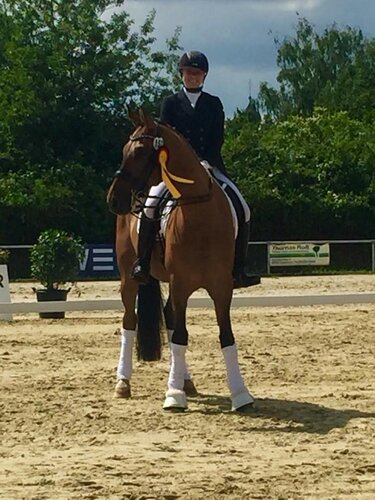 Die erste S-Dressur des Turniers in Heidelberg/Ladenburger endete mit einer faustdicken Überraschung: Nadja Bühler, Schülerin von Ilona Kress, siegte mit ihrem Don Alfredo, der streng genommen ein zu groß gewordenes Pony ist. Er ist einfach seinen Ponyeltern über den Kopf gewachsen und startet nun bei den Großpferden. Dabei war die Konkurrenz beachtlich: Martina Steisslinger aus Böblingen wurde auf ihrem auffälligen Nachwuchspferd Favory Zweite vor der Jungen Reiterin Leonie Laier aus dem baden-württembergischen Landeskader auf dem langbeinigen Fuchs Seven Heaven. Zwei der drei Richter hatten Favory auf Rang eins gesehen; aber Richterin Doris Bürger wertete das Paar auf Rang acht – so war der Sieg zunichte. Nadja Bühler ist in Nordbaden und im Reiterring Badische Pfalz jeweils U25-Meisterin (rok).