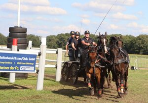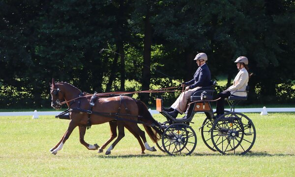 Bei den Zweispännern ging der Sieg an Rene Jeurink aus Emlichheim mit dem sehr guten Ergebnis von 43,687 Minuspunkten. Die baden-württembergische Landestrainerin Birgit Kohlweiß reihte sich auf Rang fünf ein (54,272 SP), Monja Hahn wurde Sechste (55,002).
