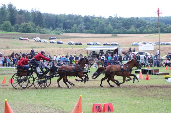 Bei den Vierspännern Pferde bewies Michael Brauchle gute Nerven im Finale. Zwei Bälle fielen, doch das reichte für den Sieg im Kegelfahren. Damit sicherte er sich die Bronzemedaille hinter dem Sieger Christoph Sandmann und Hausherr Georg von Stein, der Silber gewann.