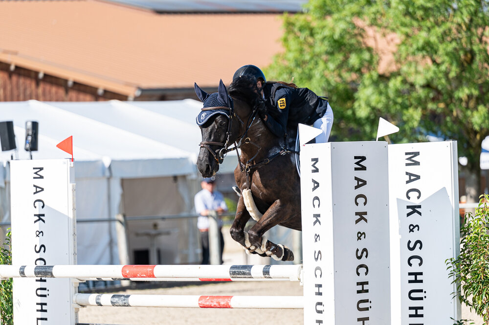 In Weilheim ging es am Vormittag weiter bei den Springreitern mit den zweiten Wertungsprüfungen der Württembergischen Meisterschaften – dabei wurden die Karten teils neu gemischt! Den Auftakt machten abermals die Ponyreiter, allerdings war nun der Kampf gegen die Uhr angesagt. Genauer: Ein Fehler/Zeit-Springen auf A**-Niveau mit steigenden Anforderungen. Luisa Sophie Roth, die gestern in der Pony-Wertung ein wenig vom Pech verfolgt war, stellte ihr reiterliches Talent heute wieder einmal mit Bravour unter Beweis. Mit ihrem wieselflinken Pony-Wallach Black Jack nahm das junge Talent vom Hasenhof stets im Fluss die engsten Wendungen und erreichte das Ziel in 49,62 Sekunden. Damit nahm sie Moritz Steimle, der bis dato im Sattel seines hübsch aufgemachten Fuchsponys Discolo SWS geführt hatte, nochmals über vier Sekunden ab und sicherte sich verdient die goldene Schleife. Der amtierende Landesponysieger hatte mit Janne ein weiteres heißes Eisen im Feuer und als Schlussreiter alles in der Hand. Im gestrigen Stilspringen setzte sich der junge Mann aus Kisslegg dabei an die Spitze des Feldes, heute machte ein ärgerlicher Hindernisfehler die Chance auf den Sieg allerdings zunichte. Somit platzierte sich Moritz Steimle an zweiter und dritter Stelle. Auf Rang vier folgte die gestrige Zweitplatzierte Mary-Ann Hollenbach mit Orchid‘s Cleopatra. Im Zwischenklassement führt nach wie vor Moritz Steimle mit 18 Punkten vor Luisa Roth und Mary-Ann Hollenbach, die sich punktgleich auf Rang zwei befinden.